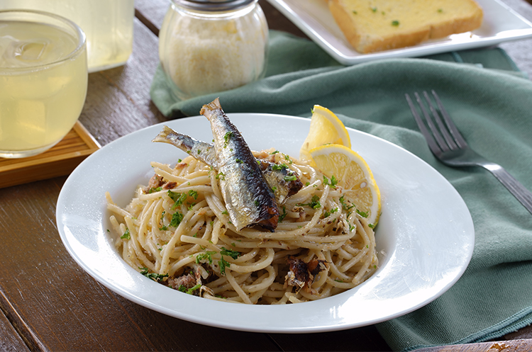 Sardines can make a great pasta dish when mixed with oil, garlic, and a little